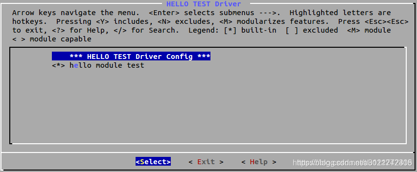 menu "HELLO TEST Driver "comment "HELLO TEST Driver Config" config HELLO tristate "hello module test" default m help This is the hello test driver endmenu
